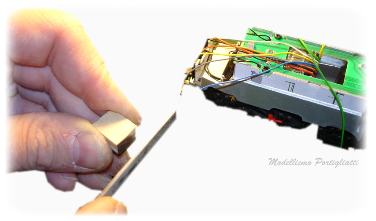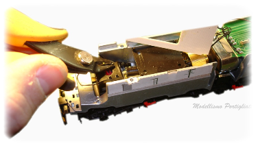 Rimuovere la sede di plastica prevista da Roco per l'alloggiamento del decoder.