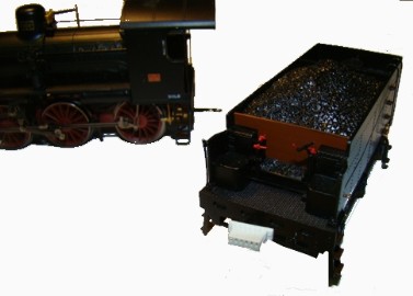 Sganciare il tender dalla locomotiva, staccando il connettore ed il gancio che li uniscono. Il connettore richiede una certa forza per essere disinserito. Non tirare i fili, ma aiutarsi con un piccolo cacciavite, facendo leva ai lati del connettore stesso.