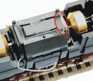 Fase 3 bis: se non interessati alla captazione di corrente tramite pantografi, semplicemente saldare un cavallotto come indicato dal segmento rosso nella foto e passare alla fase 5.