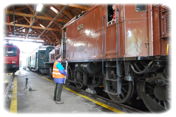 Poi, si aprono le porte del deposito, e con l'ausilio del ponte trasbordatore, il macchinista trasferisce il locomotore sul binario che raccorda il deposito alla stazione, tramite l'apposita asta di manovra.