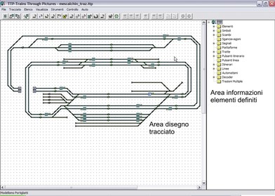 Interfaccia grafica: TTP presenta un’interfaccia grafica utente molto semplice da usare. Durante la fase di disegno del tracciato e di codifica dei vari elementi, lo schermo è diviso in due parti, nelle porzioni di 2/3 ed 1/3. Il sistema ad albero presente sulla parte destra consente il rapido richiamo dei vari elementi, per la loro programmazione o modifica, consentendo test immediati di funzionamento (azionamento scambi, verifica occupazione sezioni, …). Durante la fase di controllo, il tracciato viene visualizzato a tutto schermo, consentendone, nella maggior parte dei casi, la completa visibilità senza dover scorrere l’immagine.